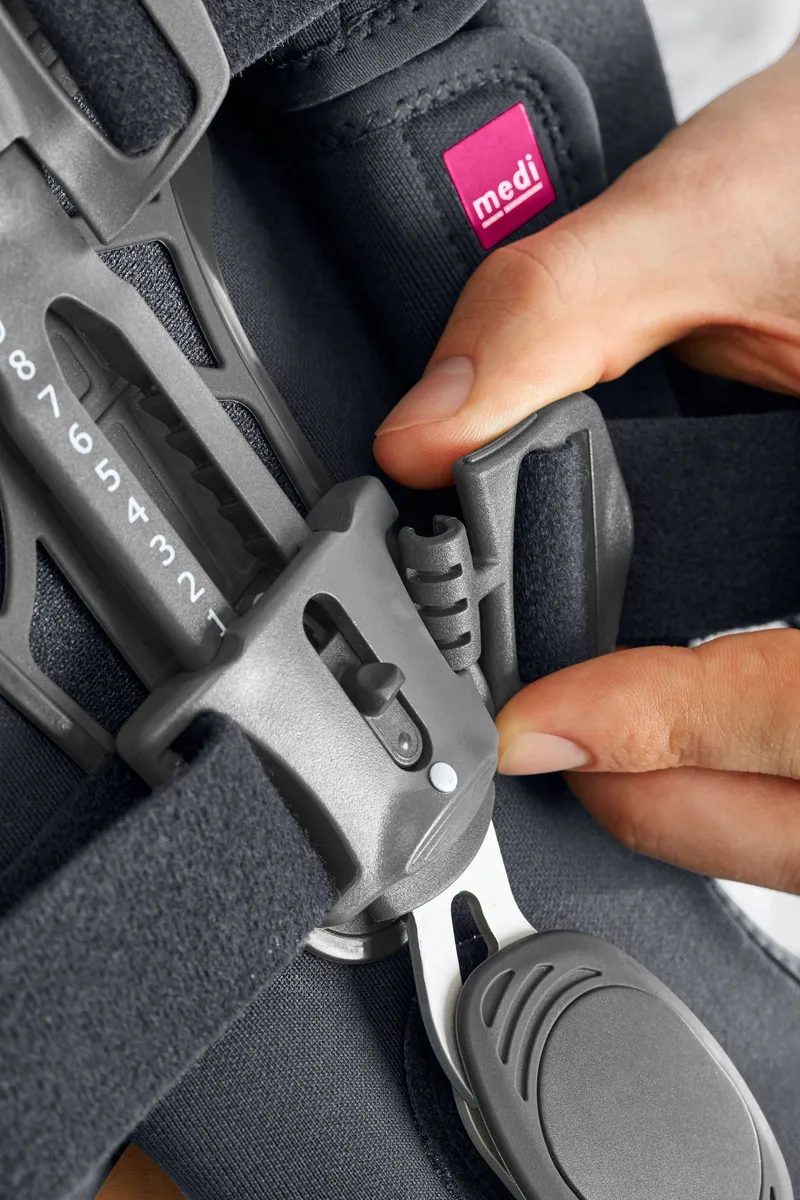 A medi Soft AO é uma joelheira de estabilização varo/valgo, proporcionando alívio em caso de osteoartrite e só deve ser colocada em pele intacta.